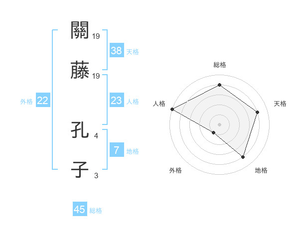 關藤 孔子さんを姓名の画数から五運を鑑定