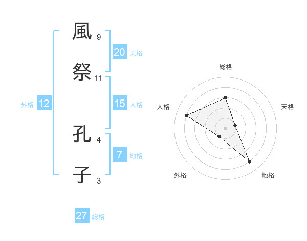 風祭 孔子さんの総格は27画の3点!