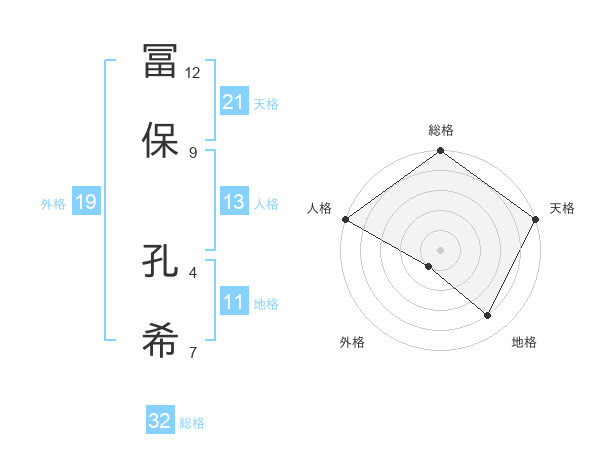 冨保 孔希さんの総格は32画の5点!