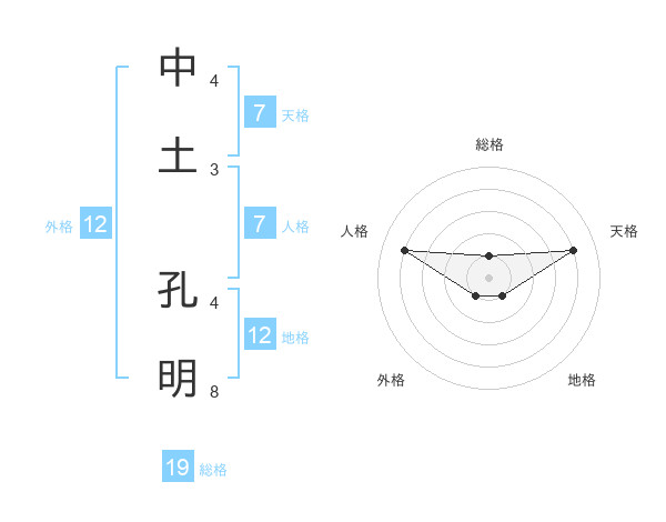 中土 孔明さんを姓名の画数から五運を鑑定