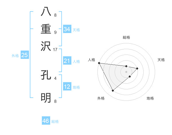 八重沢 孔明さんの人格は21画の5点!