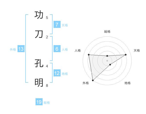功刀 孔明さんの外格は13画の5点!