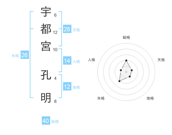 宇都宮 孔明さんを姓名の画数から五運を鑑定