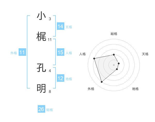 小梶 孔明さんの天格は14画の1点!