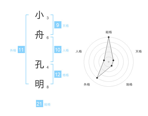 小舟 孔明さんを姓名の画数から五運を鑑定