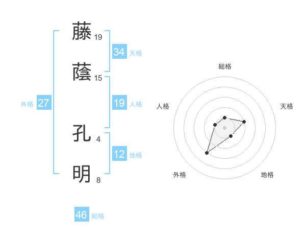 藤蔭 孔明さんを姓名の画数から五運を鑑定