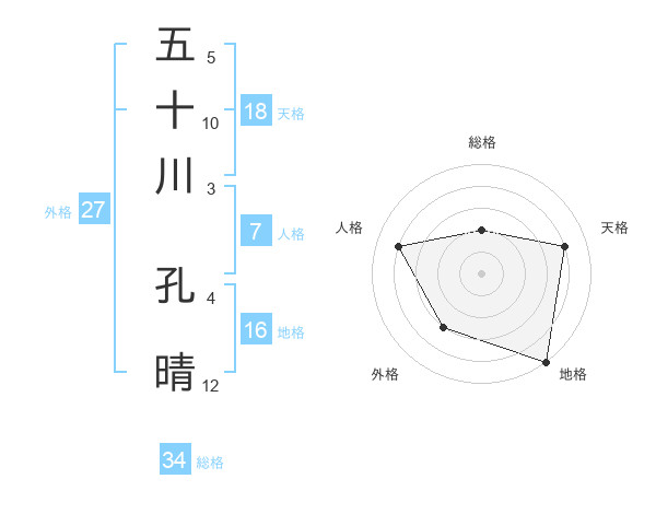 五十川 孔晴さんを姓名の画数から五運を鑑定