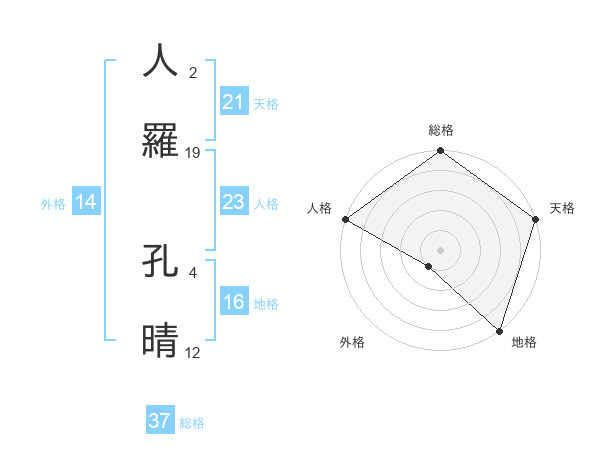 人羅 孔晴さんを姓名の画数から五運を鑑定