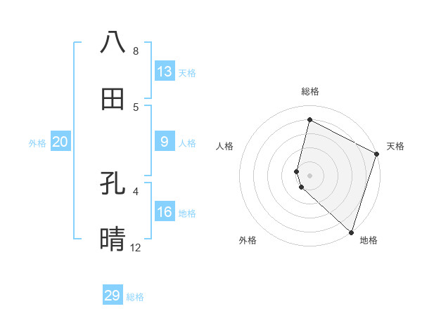 八田 孔晴さんを姓名の画数から五運を鑑定