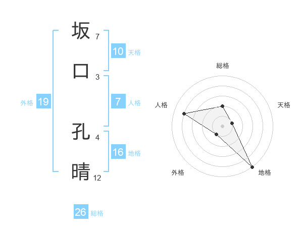 坂口 孔晴さんの総格は26画の2点!