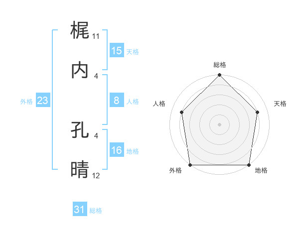 梶内 孔晴さんの総格は31画の5点!