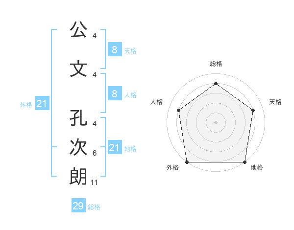 公文 孔次朗さんを姓名の画数から五運を鑑定