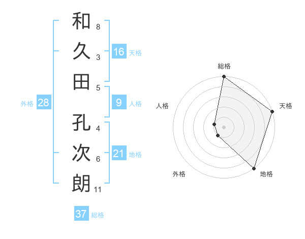 和久田 孔次朗さんを姓名の画数から五運を鑑定
