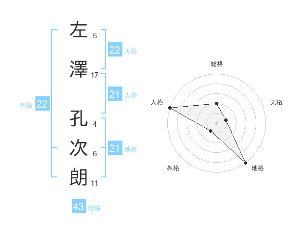 左澤 孔次朗さんを姓名の画数から五運を鑑定