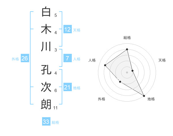 白木川 孔次朗さんを姓名の画数から五運を鑑定