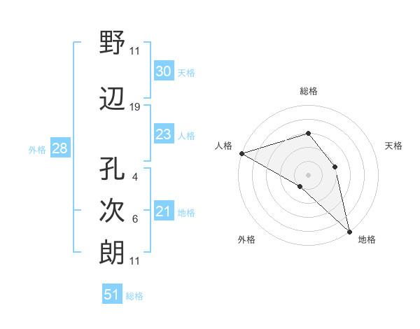野辺 孔次朗さんの総格は51画の3点!