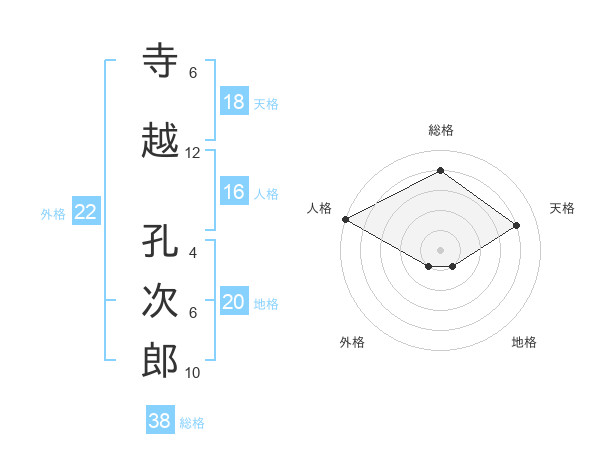 寺越 孔次郎さんの総格は38画の4点!