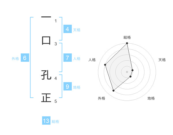 一口 孔正さんの総格は13画の5点!