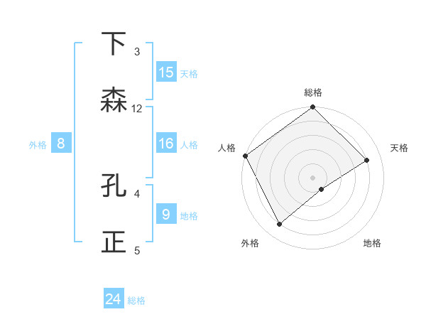 下森 孔正さんの天格は15画の4点!