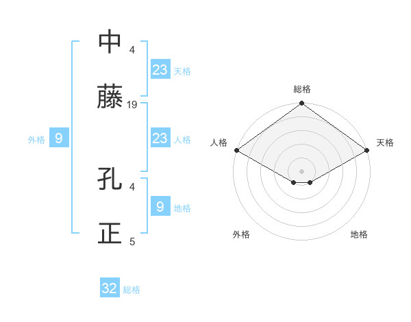 中藤 孔正さんを姓名の画数から五運を鑑定