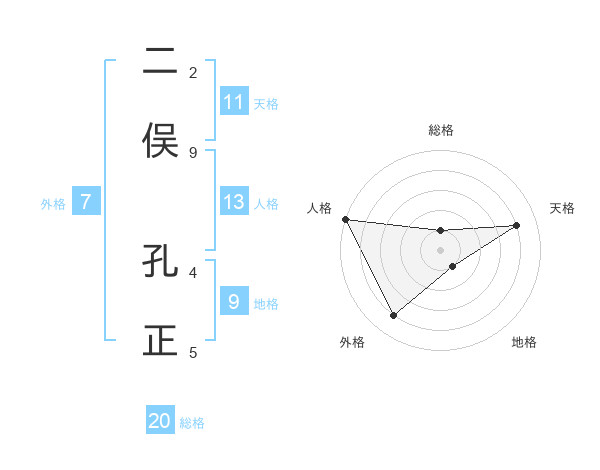 二俣 孔正さんを姓名の画数から五運を鑑定