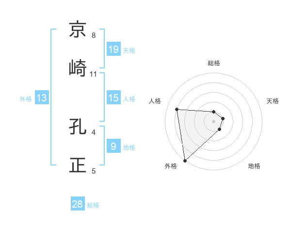 京崎 孔正さんを姓名の画数から五運を鑑定