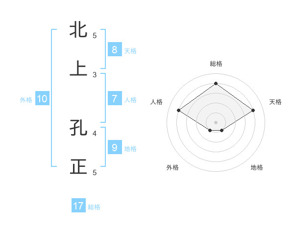 北上 孔正さんの総格は17画の4点!