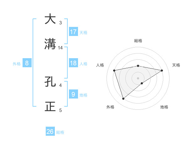 大溝 孔正さんの天格は17画の4点!