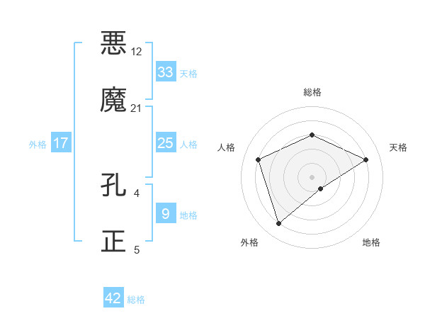 悪魔 孔正さんの外格は17画の4点!