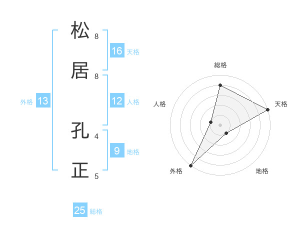 松居 孔正さんの天格は16画の5点!