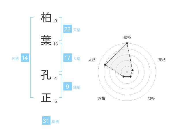 柏葉 孔正さんの総格は31画の5点!