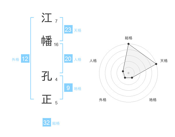 江幡 孔正さんを姓名の画数から五運を鑑定