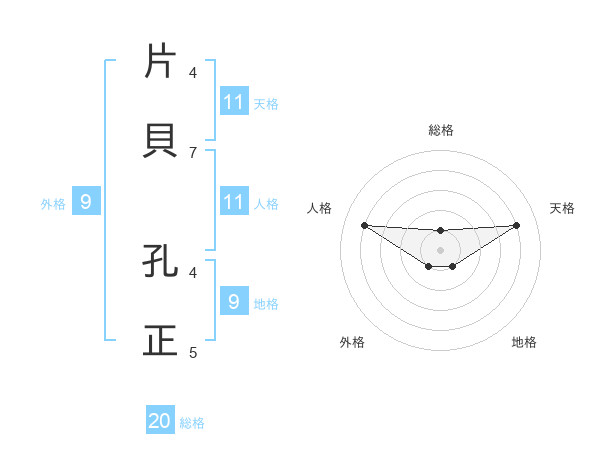 片貝 孔正さんを姓名の画数から五運を鑑定