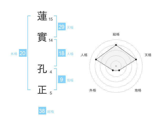 蓮實 孔正さんの総格は38画の4点!