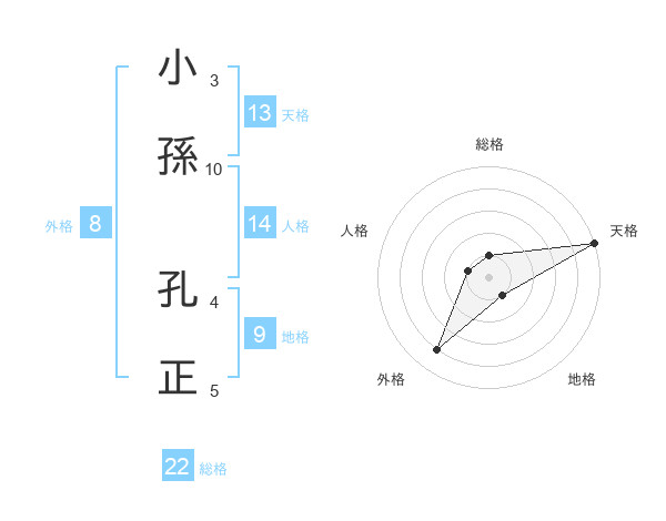 小孫 孔正さんの総格は22画の1点!