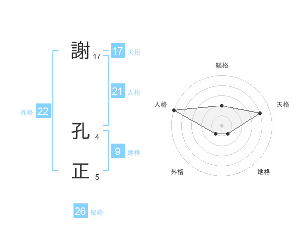 謝 孔正さんの総格は26画の2点!