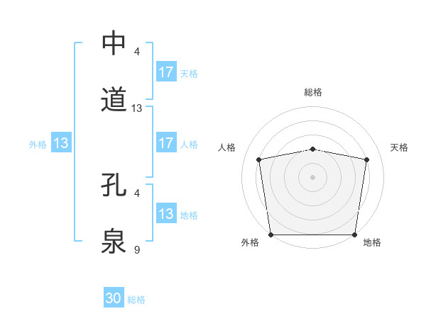 中道 孔泉さんを姓名の画数から五運を鑑定