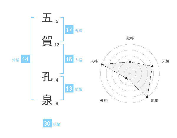 五賀 孔泉さんを姓名の画数から五運を鑑定