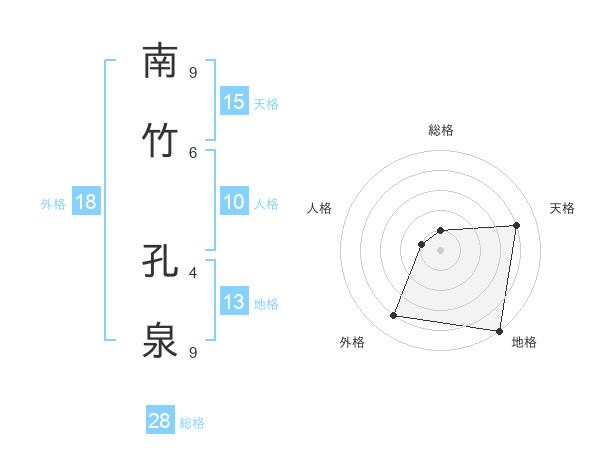 南竹 孔泉さんを姓名の画数から五運を鑑定