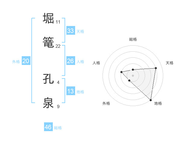 堀篭 孔泉さんを姓名の画数から五運を鑑定