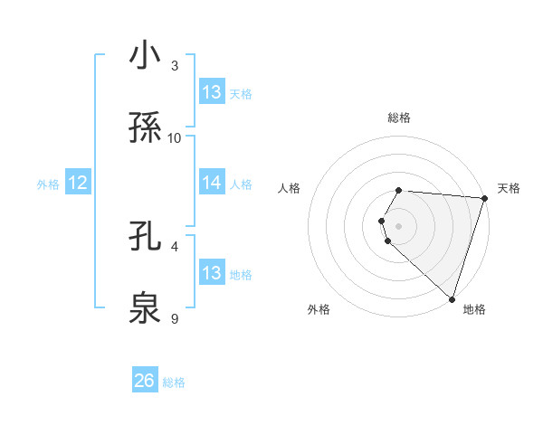 小孫 孔泉さんの天格は13画の5点!