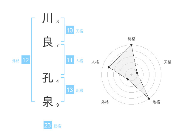 川良 孔泉さんを姓名の画数から五運を鑑定