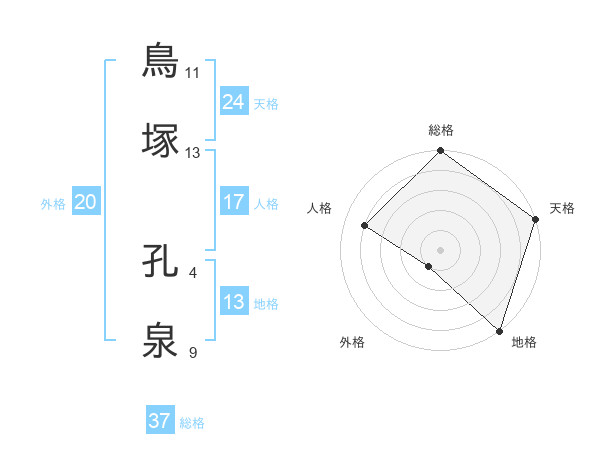鳥塚 孔泉さんを姓名の画数から五運を鑑定