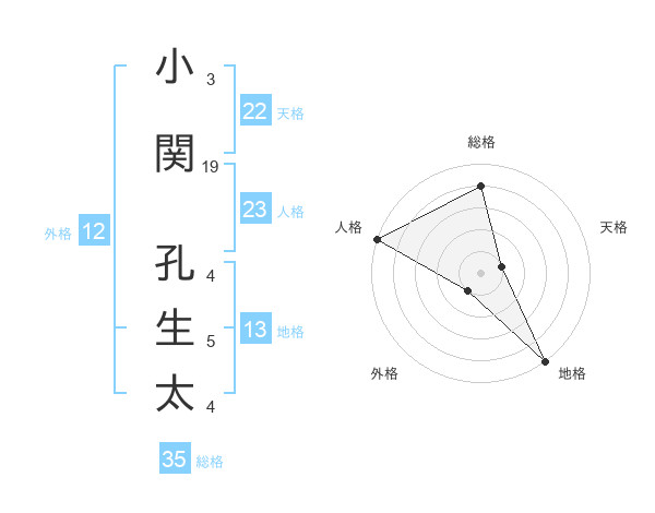 小関 孔生太さんを姓名の画数から五運を鑑定