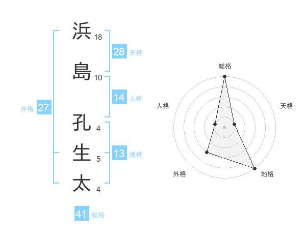 浜島 孔生太さんの総格は41画の5点