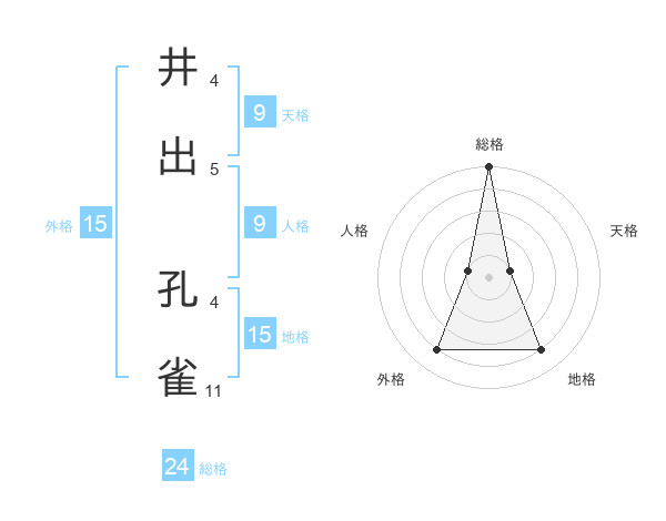 井出 孔雀さんを姓名の画数から五運を鑑定