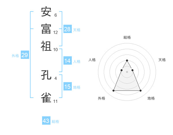 安富祖 孔雀さんの総格は43画の2点!
