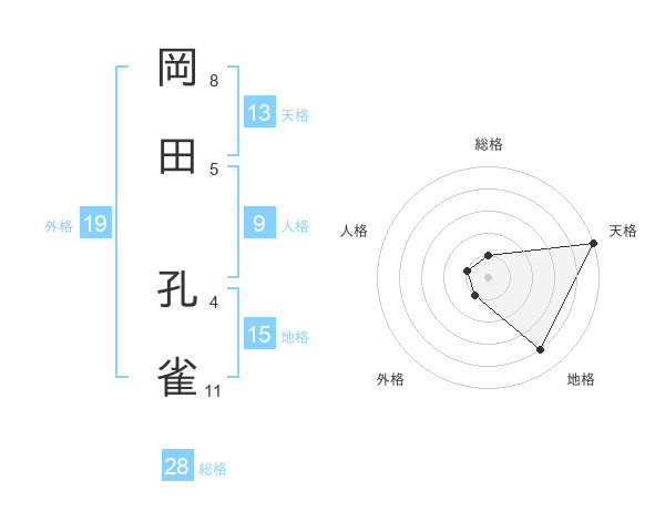 岡田 孔雀さんを姓名の画数から五運を鑑定