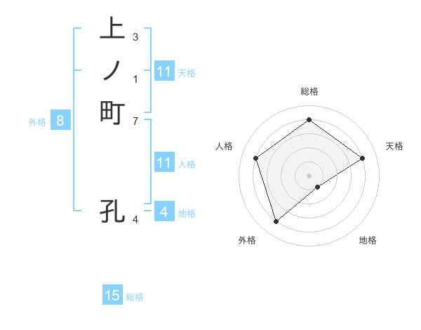 上ノ町 孔さんの総格は15画の4点!
