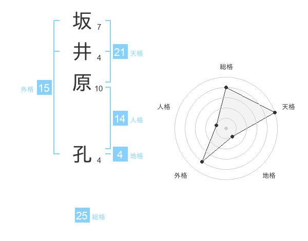 坂井原 孔さんの総格は25画の4点!